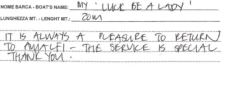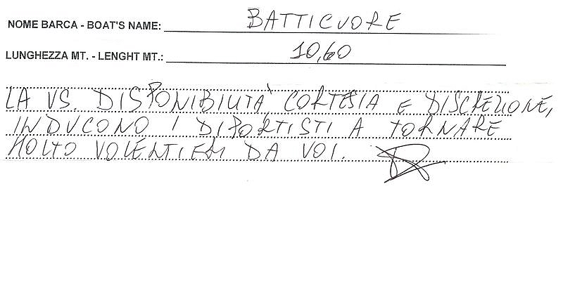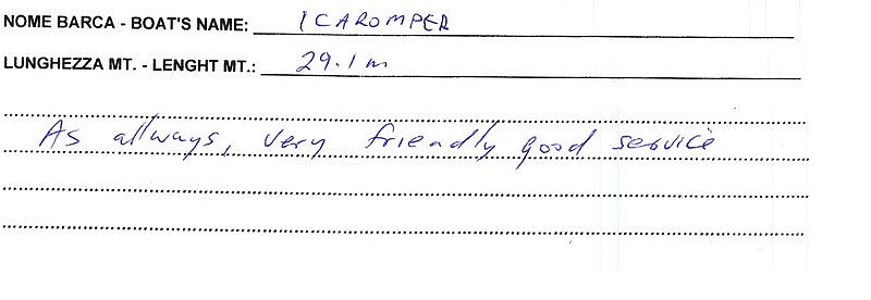 La Vs. disponibilità cortesia e dicrezione inducono i diportisti a tornare molto volentieri da voi.