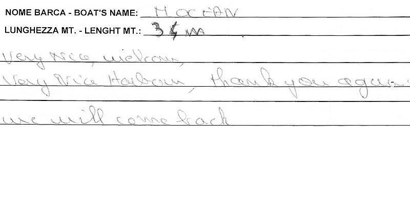 Very nice welcome. Very nice harbour. Thank you again. We will come back.