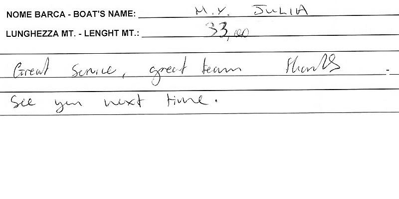 Always been a great pleasure staying in port of Amalfi. Special thanks to Julio and all marina crew.