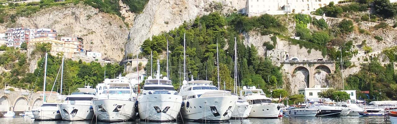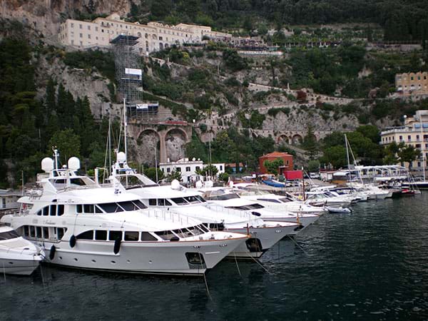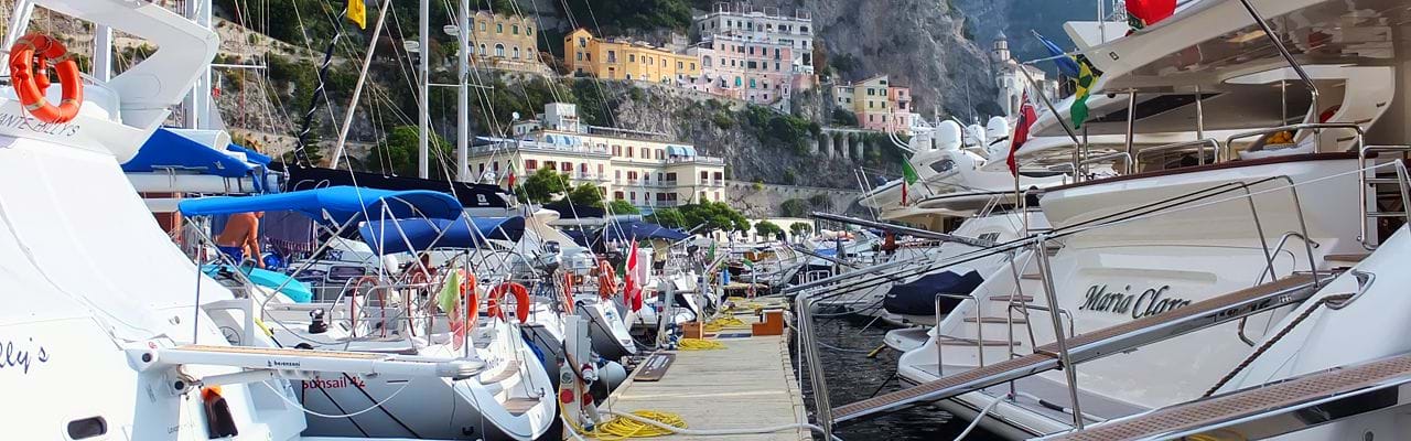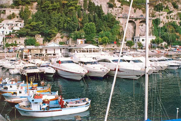 Il porto di Amalfi è protetto a SW da un molo foraneo di 190 m e ad E da un molo